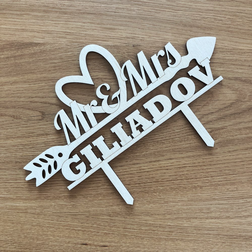 Ozdobný dřevěný zápich do dortu s příjmením novomanželů, díky kterému i z obyčejného dortu vytvoříte dort jedinečný, který bude každý obdivovat.